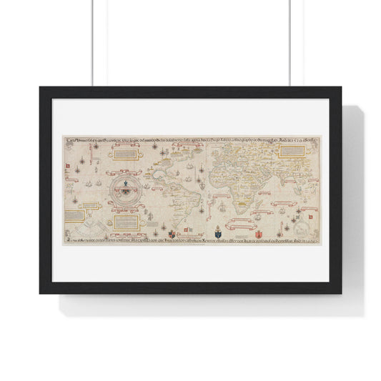 World Map (1527) by Diogo Ribeiro, from the Original, Framed Art Print
