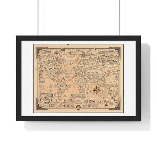 World Wonders, Pictorial Map of the World (1939) by Ernest Dudley Chase, from the Original, Framed Art Print
