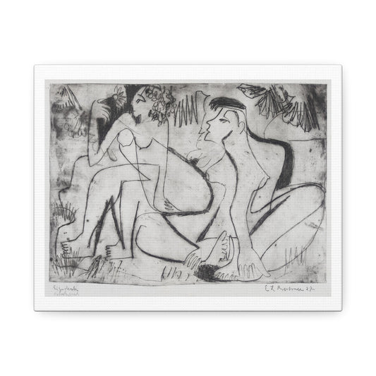 Zwei Nackte Mädchen in Freien 'Two Naked Girls Outdoors' by Ernst Ludwig Kirchner, Art Print from the Original on Canvas