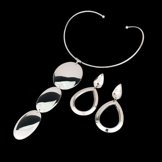 Bold Golden Pendant Necklace and Long Drop Earrings