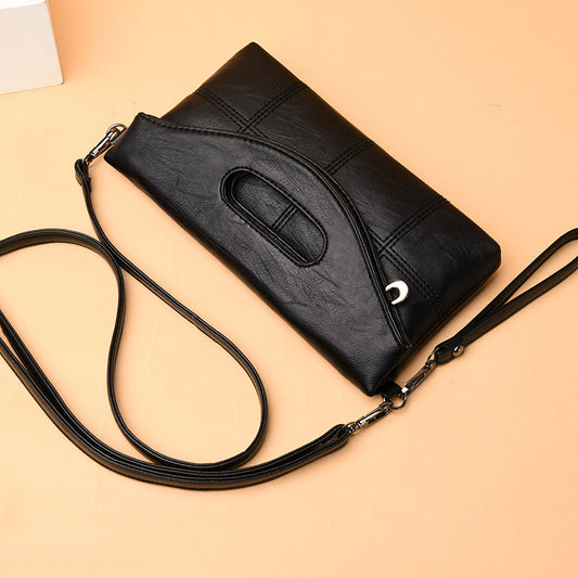 Classic Black Leather Clutch Bag, Large Capacity Handbag, Folding Diagonal Bag
