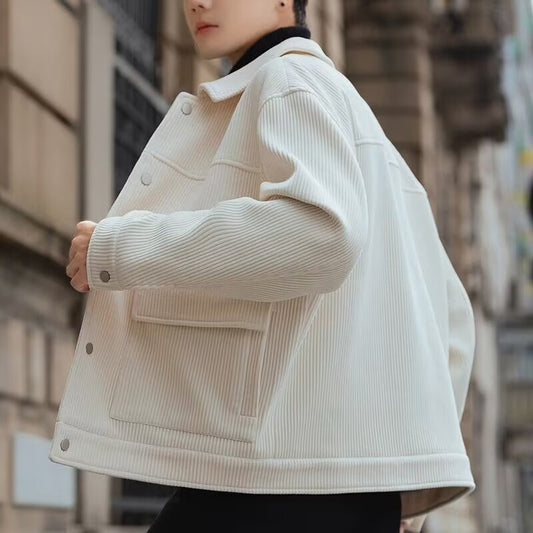 Classic Ribbed Short Casual Men's Lapel CollarJacket