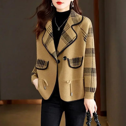 Colourblock Plaid Crop Women's Wool Blend Blazer