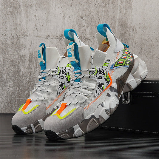Colourful Knitted Mesh Shoes, Men's Inner Height Gain Shoes