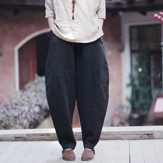 Cotton and Linen Retro Women's Artistic Stone Washed Loose Bloomers Trousers
