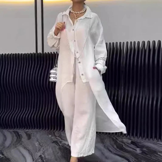 Cotton Linen Women's Summer Suit, Long Tail Shirt Outfit