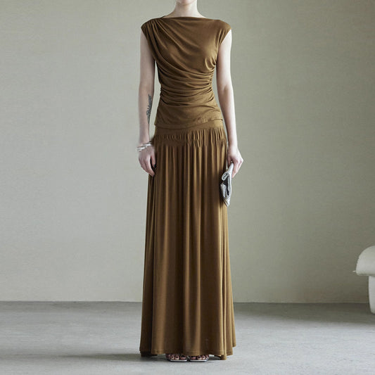 Cotton Silk Off-Neck French-Style Top and Skirt