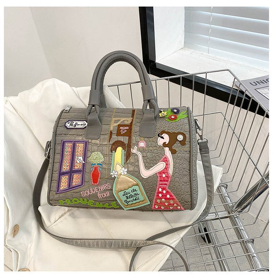 Cross Body Patchwork Embroidered Tablet-Friendly Boston Bag