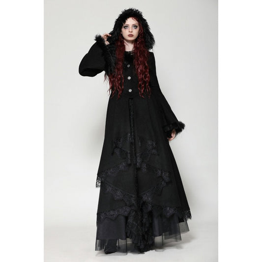 Dark in Love Eira Lace and Faux Fur-Trimmed Hooded Coat