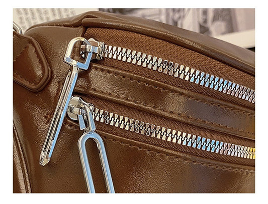 Fashion Minimalist Two-Zip Bucket Leather Handbag