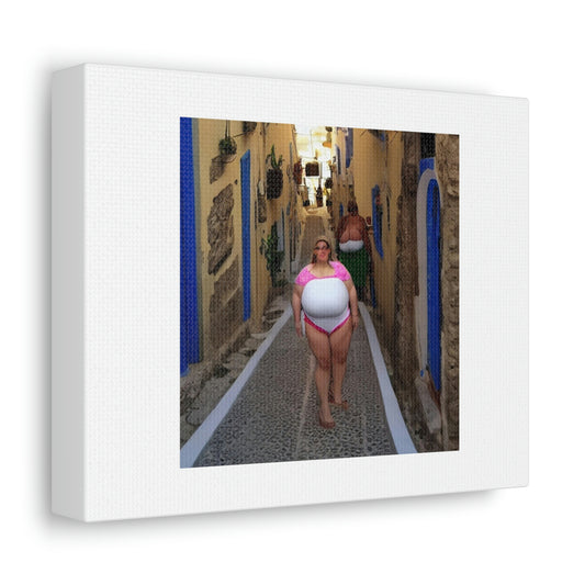Fat Girl In Greece Digital Art 'Designed by AI' on Satin Canvas, Stretched