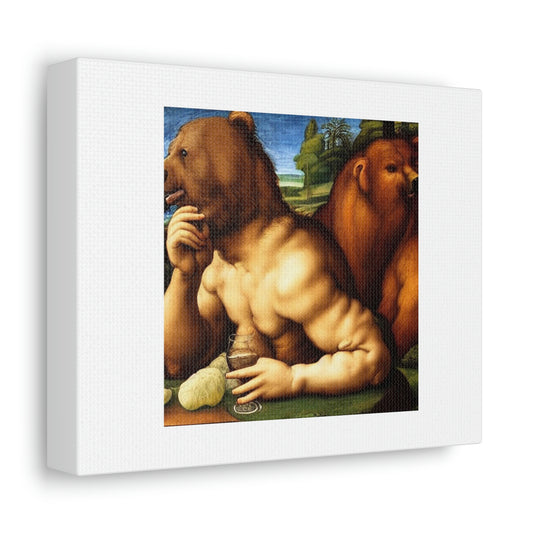 Bear Drinking Wine Digital Art 'Designed by AI' on Satin Canvas, Stretched