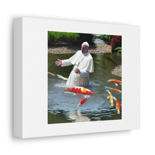 Pope Francis Swimming In A Pond Digital Art 'Designed by AI' on Satin Canvas