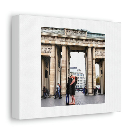 Kissing By The Brandenburg Gate Digital Art 'Designed by AI' on Satin Canvas