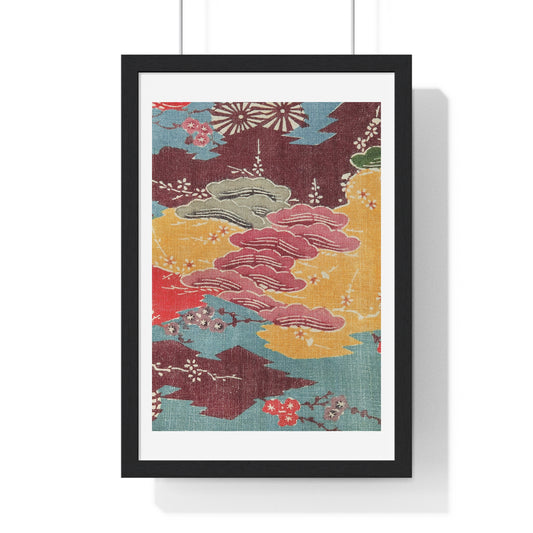 Fragment Decorated with Pine, Plum, and Chrysanthemum over Stylised Pine Bark (19th Century) from the Original, Framed Print