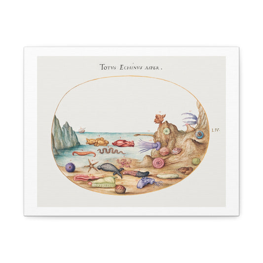 Sea Cucumbers, Sea Urchins, Starfish, Sea Nettle, Sea Hare and Other Marine Life (1575–1580) by Joris Hoefnagel, from the Original, Print on Canvas