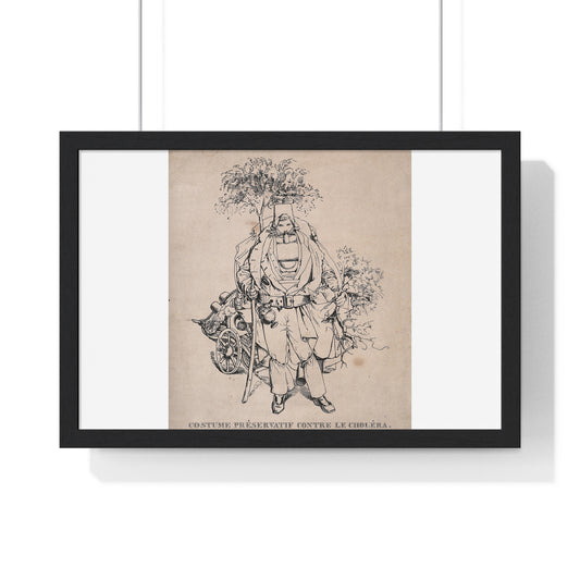 Man Dressed in Absurd Protective Clothing Against the Cholera Epidemic, Etching (1832) from the Original, Framed Art Print
