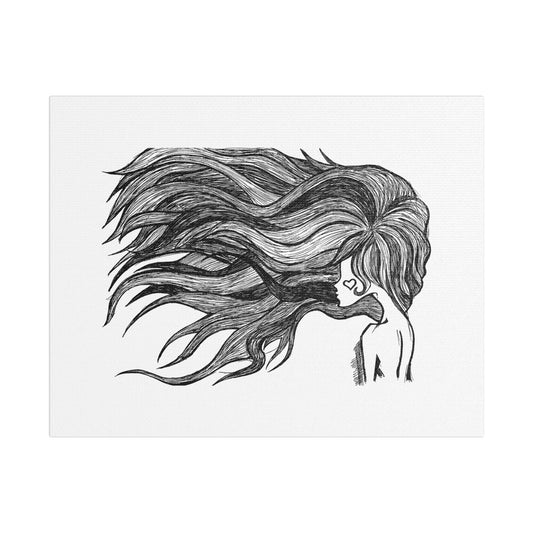 Flowing Hair Girl Line Art, Printed on Satin Canvas