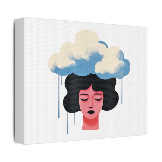 Woman Under a Cloud Portrait, Cartoon Art Print on Canvas