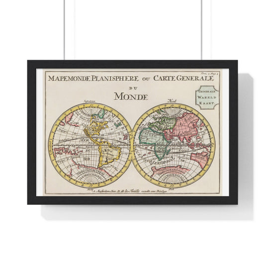 Wereldkaart Mapemonde, Planisphere ou Carte Generale du Monde (1735) by Daniel de Lafeuilledelete, from the Original, Framed Art Print