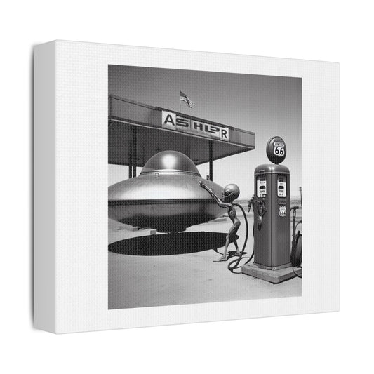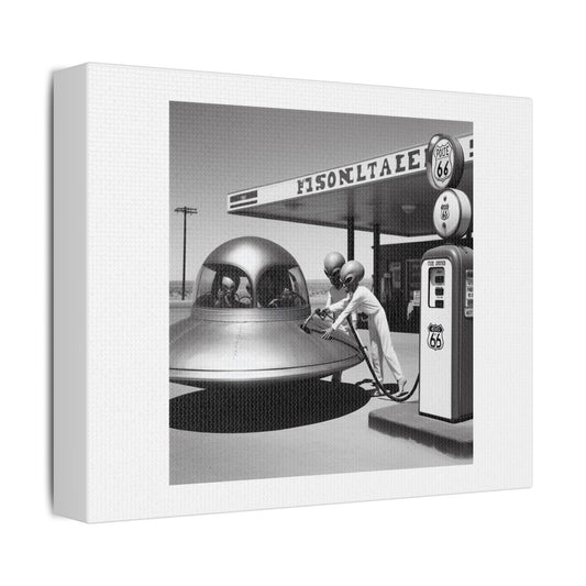 Fill Her Up! Aliens at Roswell in 1947 'Designed by AI' Art Print on Canvas
