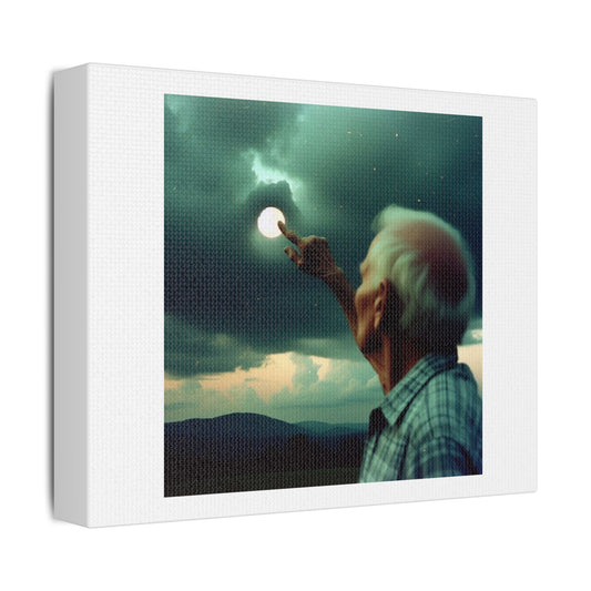 Man Places His Finger Through a Portal in the Sky 'Designed by AI' Art Print on Canvas