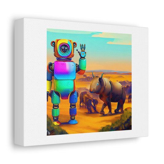 Robot on an African Safari digital art 'Designed by AI' on Satin Canvas