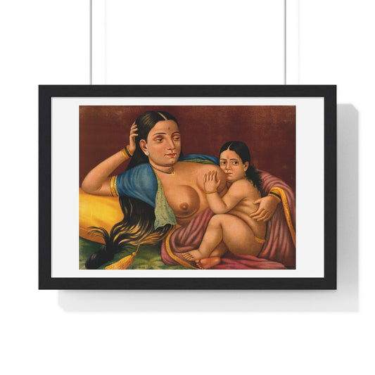 Woman Suckling an Infant, Indian Chromolithograph, from the Original, Framed Art Print