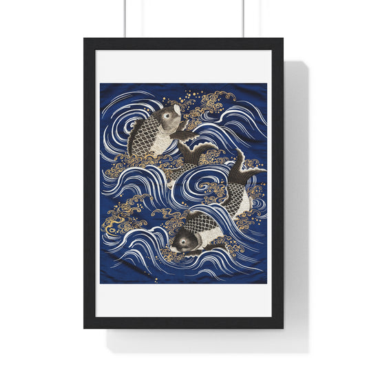 Gift Cover 'Fukusa' with Carp in Waves (Meij Period) from the Original, Framed Art Print