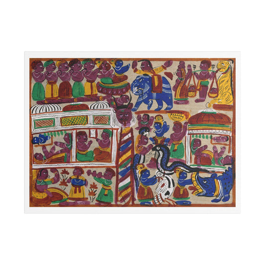 Events in Krishna's Life, Indian Gouache Drawing, from the Original, Art Print on Canvas