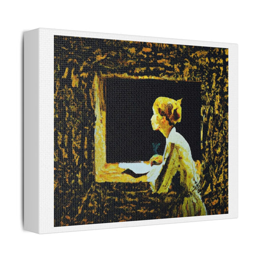 Woman Seated in a Window 'Designed by AI' Art Print on Canvas