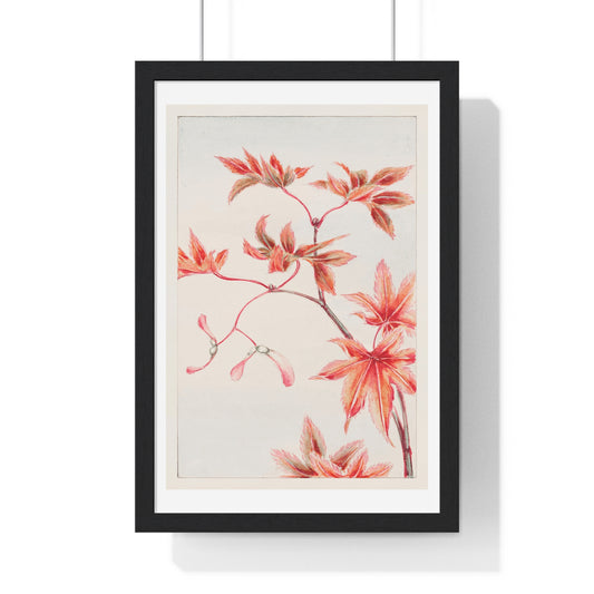 Branch of Maple Tree 'Momiji' with Leaves and Seeds (1870–1880) by Megata Morikaga, from the Original, Framed Art Print