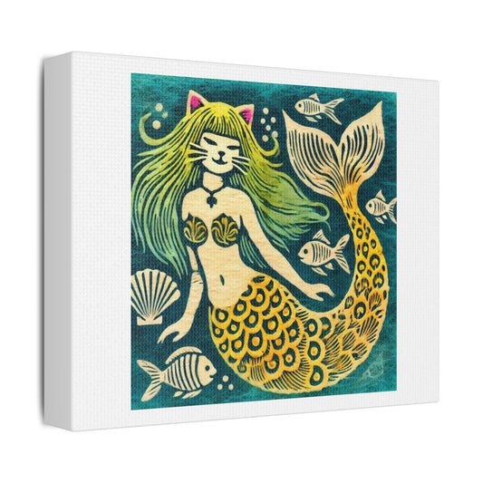 Purrmaid, Fuzzy Felt Art 'Designed by AI' Art Print on Canvas