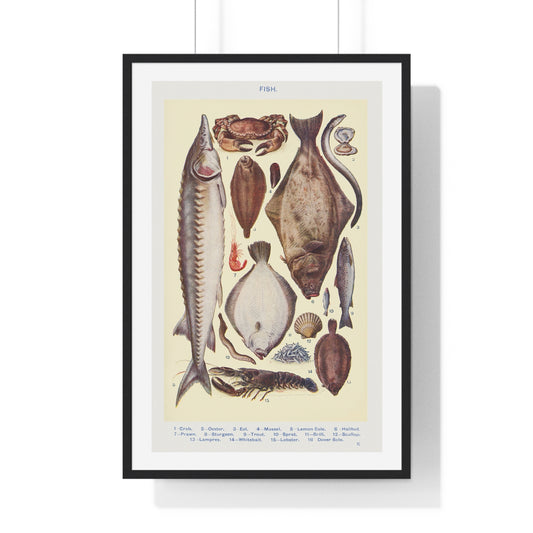 Vintage Fish and Seafood Illustration from Mrs Beeton's Book of Household Management (1861) from the Original, Framed Art Print
