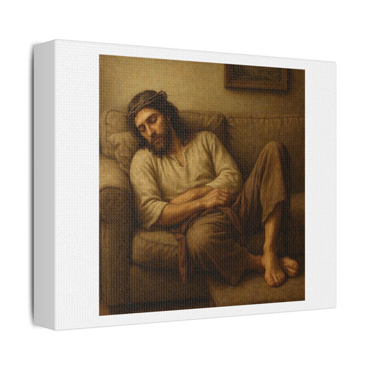 Jesus Christ Asleep on the Sofa 'Designed by AI', Art Print on Canvas