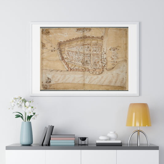 Antique Map of the City of Hull (circa 1539) from the Original Manuscript, Framed Print