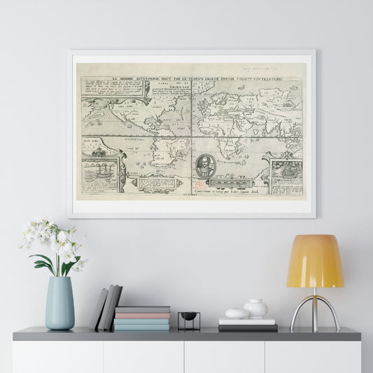 Francis Drake's World Voyage, Tudor Antique Map (circa 1581) from the Original, Framed Print