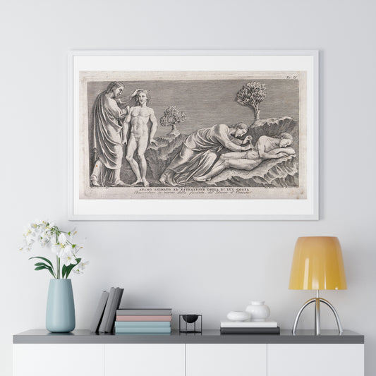 God Animates Adam and Operates on his Rib, Etching by Giovanni Leonetti after Carlo Cencioni after Nicola Pisano, Framed Print