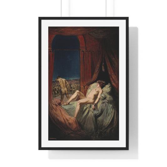 A Provocative Naked Young Woman Lying on a Bed, Death Sits at Her Side Representing Syphilis (1912) Framed Art Print