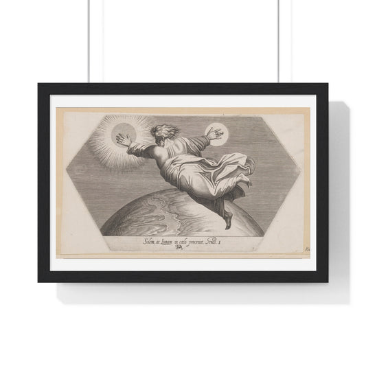 God Schept de Zon en de Maan (1626) by Francesco Villamena and Rafaël, from the Original, Framed Art Print