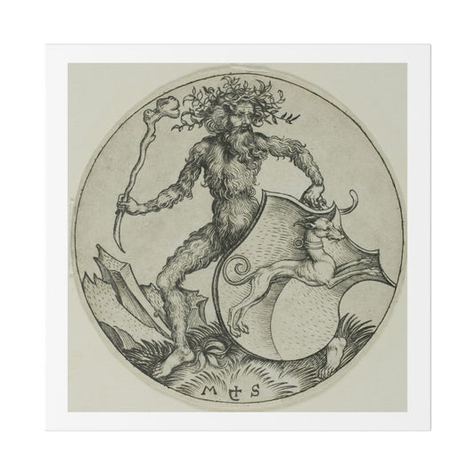 Shield with a Greyhound, Held by a Wild Man (1470–1491) by Martin Schongauer, from the Original, Canvas Print
