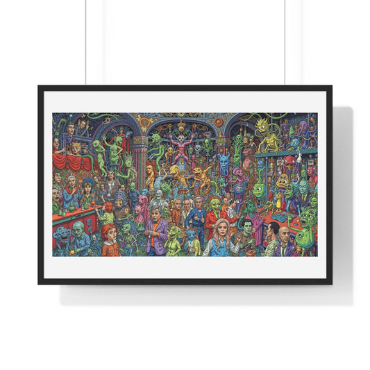 Demons and NPCs Diorama, Cartoon Art 'Designed by AI' Framed Art Print