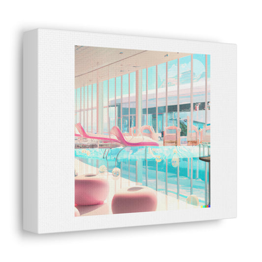 Lounge Area with Pool and Translucent Pastel Pink Water digital art 'Designed by AI' on Canvas