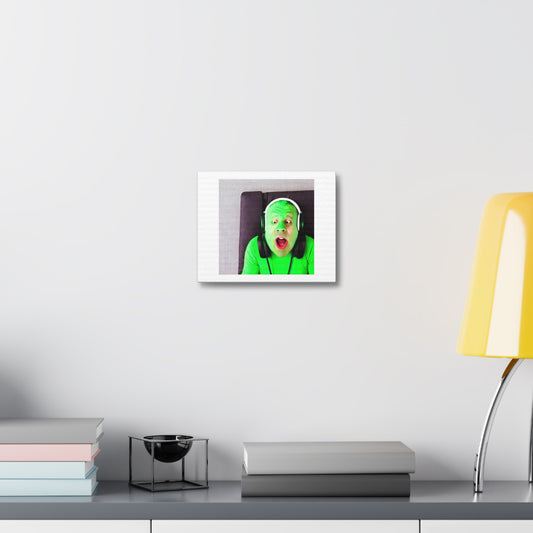 Green Glob of Goo Listening to Music 'Designed by AI' Art Print on Canvas