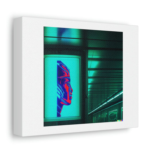 Cyborg Poster Hanging In A Neon Lit Subway Station Digital Art 'Designed by AI'