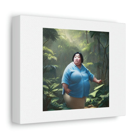 Fat Asian Woman In A Light Blue Shirt Digital Art 'Designed by AI' on Canvas