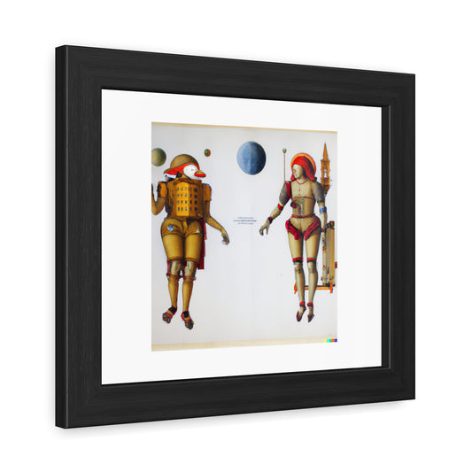 Mars and Venus as Robots in the Style Of Botticelli 'Designed by AI' Wooden Framed Print