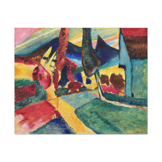 Landscape with Two Poplars (1912) by Wassily Kandinsky from the Original, Art Print on Satin Canvas
