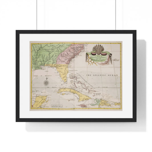 Map of Carolina, Florida and the Bahama Islands with Adjacent Parts from the Natural History of Carolina, Florida, and the Bahama Islands (1754) from the Original, Framed Art Print