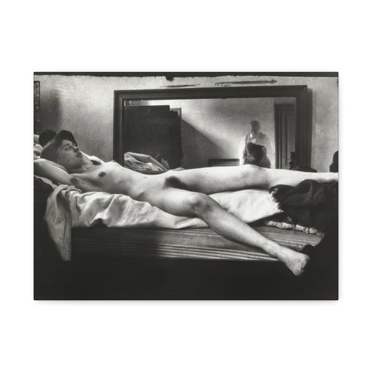 Reclining Nude: Portret van een Vrouwelijk Naakt Met in de Spiegel de Fotograferende (1890–1910) by George Hendrik Breitner from the Original, Art Print on Satin Canvas